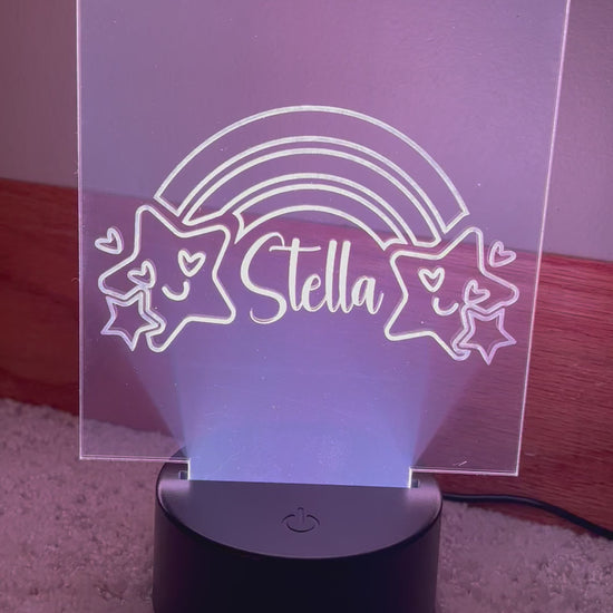 What you receive: Package comes with a clear acrylic engraved sheet, 3D night light LED holder, charging cable, and remote control.